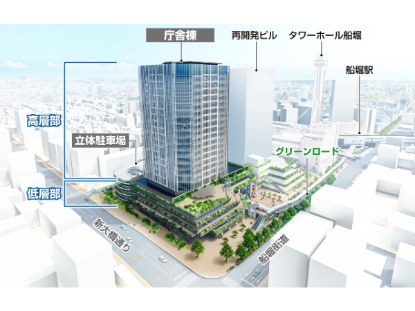 人口の減少や窓口のオンライン化によるニーズの変化や来庁頻度の変動などに伴う、一部フロアの用途変更など多様な用途に柔軟に変更できる庁舎づくりをする。また、地下階を作らないことで工期・コストの削減につなげるなどイニシャルコストの削減に取り組むほか、エネルギー運用の効率化などによってランニングコストの合理化も図る。