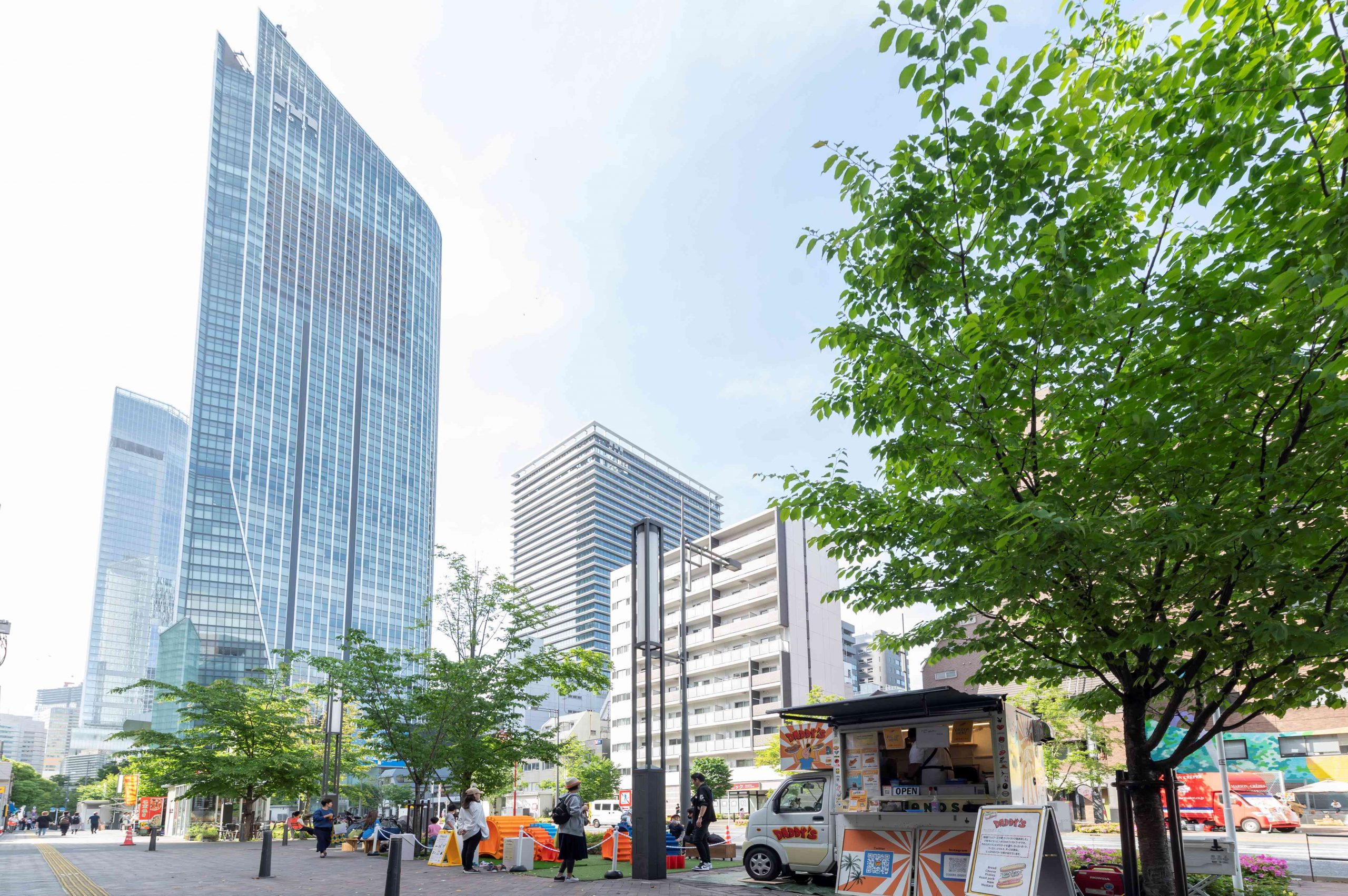 いつもは多くのビジネスマンが行き交う歩道。しかし、この期間ばかりは移動販売車やキッチンカーが立ち並び、カップルや家族連れがドリンクや軽食を片手に散歩を楽しむ…。2023年6月1、2、4日(開催時間11時~14時、4日のみ16時まで)に開催された「新虎ストリートマルシェ」は、新橋と虎ノ門を結ぶ新虎通り(環状2号線同区間)を会場としたイベントだ。4月27~29日に行われた第1回に続き、地域ににぎわいをもたらす契機となった。