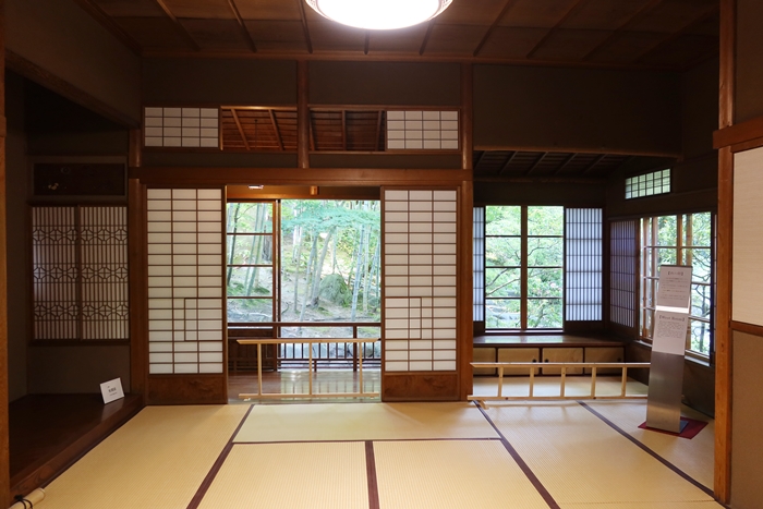 西の間は竹林を望む部屋で、ここでは欄間や引手その他にも竹があしらわれており、この部屋は竹で統一しようと楽しみながら造ったであろう施主、大工の姿を妄想してしまった。今では引手のような小さなものにこだわって家を作ることはほぼあり得ないが、当時のお金持ちにはよくある楽しみだったのだろう。