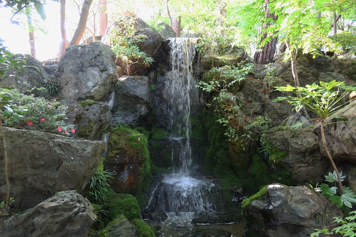 ちなみに庭の高低差は8m近くあり、実に立体的。庭の高台にある茶室の近くには滝があるのだが、落差3.8mは庭園内とは思えないサイズだ。