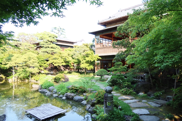 実際、齋藤家が別邸を造る以前の土地の使われ方では池泉と滝のある庭が人気を呼んだ料亭があったり、その後に移転してきた医院も庭園に療養室を点在させたりしていたのだとか。自然の地形を生かした庭が代々作られてきた土地なのである。