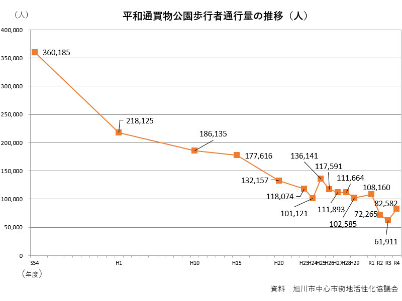 北海道第二の都市・旭川市。その中心部にある、JR旭川駅から延びる歩行者専用道路「平和通買物公園」にはかつて、商店に加えて大型商業施設が立ち並んだ。週末ともなると買い物客でごった返し、肩と肩が触れ合うほどのにぎわいを見せた。それも2000年代には大型施設が次々と姿を消し、今では空きテナントも少なくない。