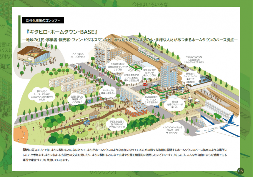 この新球場「エスコンフィールドHOKKAIDO」と、周辺エリアを含めた「北海道ボールパークFビレッジ」(以下、ボールパーク)に参画した株式会社日本エスコンと北広島市がパートナー協定を締結し、「官民共創」で北広島市の再開発に取組む体制となっている。ボールパークの建設が決定したことで、重要なアクセス拠点を担うことが想定されるJR北広島駅西口エリアの活性化整備計画として、両者が協議のうえ策定されたものが「キタヒロ・ホームタウン-BASE 2021-2029」である。