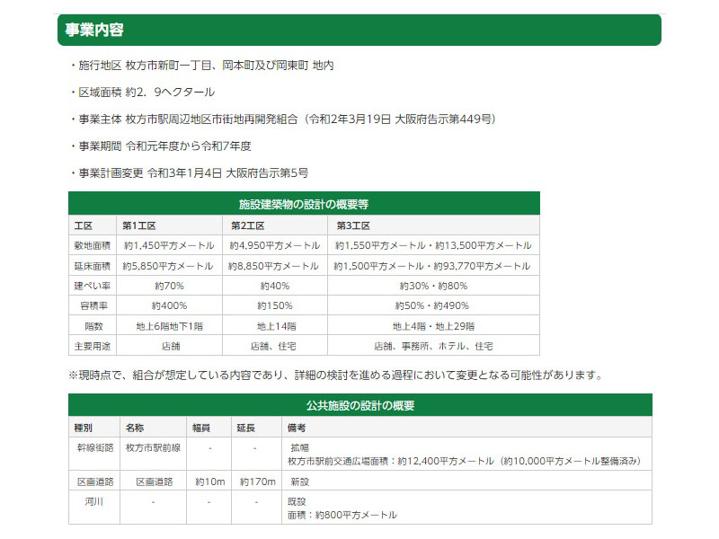 枚方市駅周辺地区第一種市街地再開発事業の概要