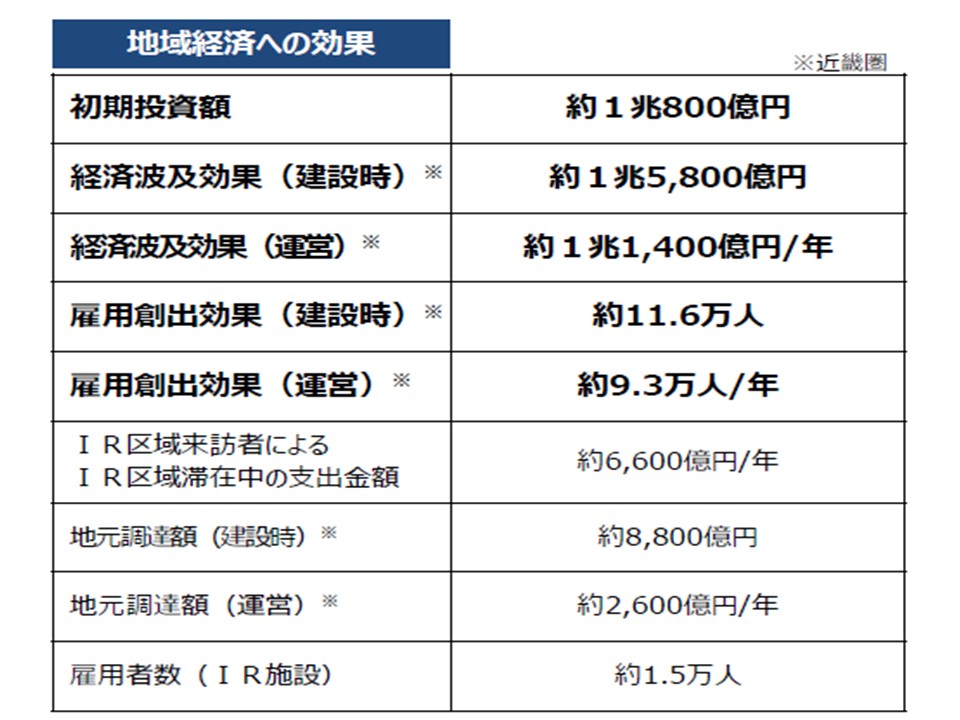 上記の数字を見てもわかるように、大阪IRにより関西圏に大きな経済効果が生まれると予測されている。