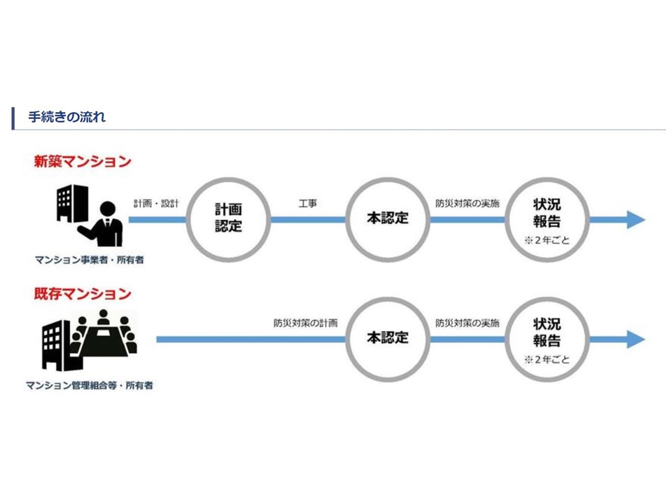 本認定を受けたマンションは、2年ごとに認定基準にかかわる防災対策の状況について報告する。