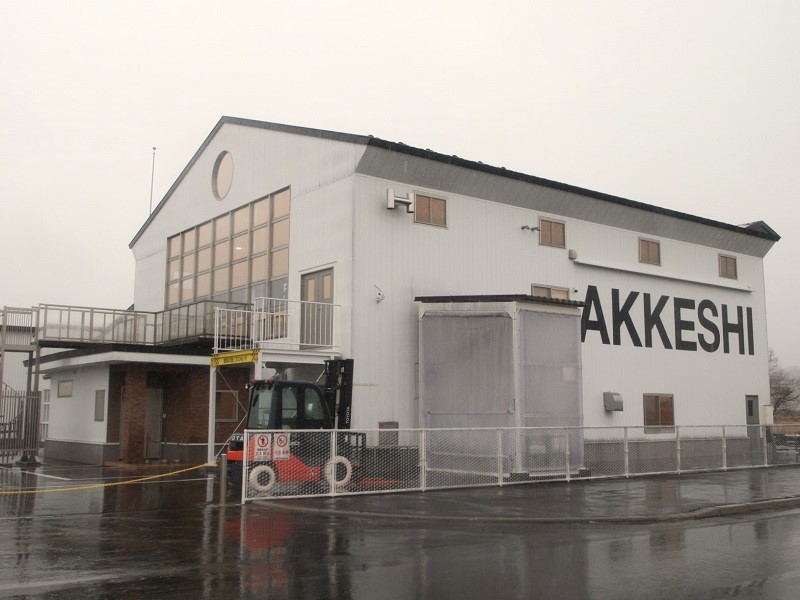 オリエンテーションが終わると一行は送迎車に乗り込み、蒸溜所へ。途中、車の窓からは、厚岸湾に近い丘に立つ熟成庫が見えた。大磯さんは「海に近い場所に建てられています。天気が荒れると波しぶきがかかる所もあり、潮の香りが届きます」。熟成庫には大きく「AKKESHI」と書かれ、町の名前が前面に出ている。この地の海風に吹かれ、ウイスキーが豊かな時を刻んでいるのだと実感できた。