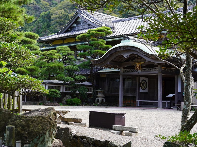 1886(明治19)年12月に着工し、翌年の2月19日に完成。わずか2ヶ月という驚きの工期は、明治天皇の嫡母にあたる英照(えいしょう)皇太后のご宿泊に間に合うようにと予定されたもの。1887(明治20)年3月7日に英照皇太后をお迎えしたあと、1891(明治24)年には後の大正天皇である明宮嘉仁(はるのみやよしひと)親王が避暑、療養、臨海学校の目的で3週間ほど滞在されたのをはじめ、歴代の皇族や各界の要人が宿泊したという。