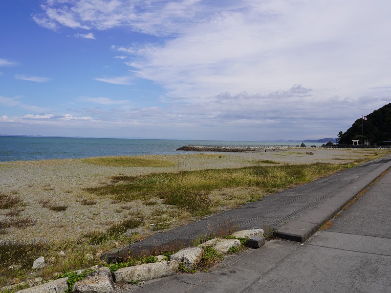 三重県伊勢市の景勝地の一つ、二見浦(ふたみうら)。神宮(伊勢神宮)の内宮近くを流れる五十鈴川が伊勢湾に注ぐ沖積低地で、海岸線からほど近い海の中には大小の岩が夫婦のように寄り添う夫婦岩(めおといわ)、海岸に面して縁結びや交通安全などにご利益があるとされる二見興玉神社(ふたみおきたまじんじゃ)がある。