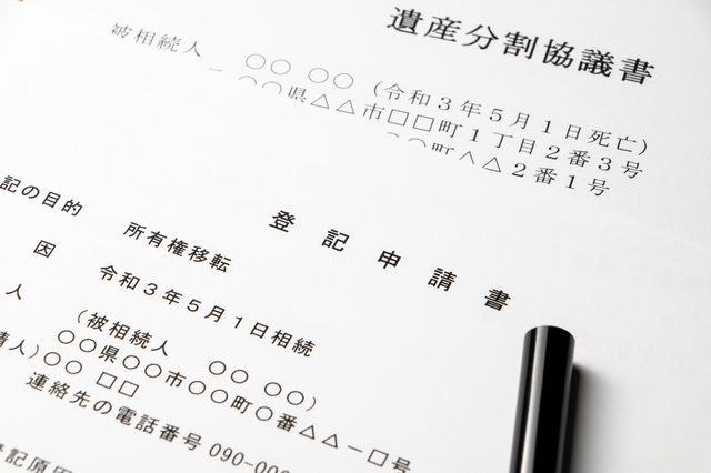 遺産分割とは、主に法定相続割合以外の割合で遺産を分けることを指す。遺産分割のための話し合いを遺産分割協議と呼び、遺産分割協議で決めた内容を書面化したものが遺産分割協議書となる。遺産分割協議書は、遺産分割によって相続登記を行う際の必要書類だ。
