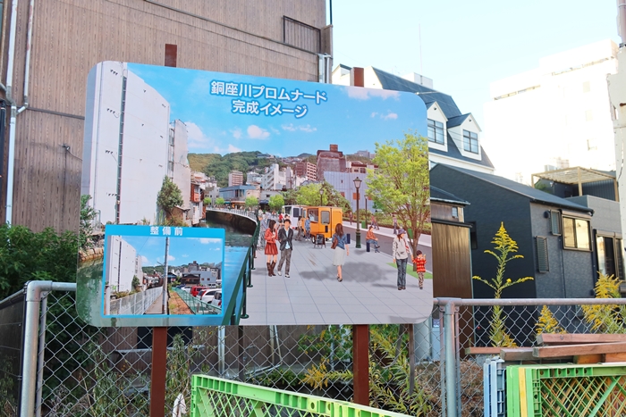 もうひとつは暗渠になっていた銅座川を再生、川沿いをそぞろ歩きの楽しいプロムナードにしようという計画。すでに下流の新地中華街あたりは開渠となっており、多くの観光客が集う場所になっているが、上流には川の上に闇市由来の銅座市場があり、川の姿が見えない状態が続いていた。ところが2017年に市場の床が崩落、その後、再開発のイメージ図が公開され、現在は少しずつ土地の収用などが進んでいる。