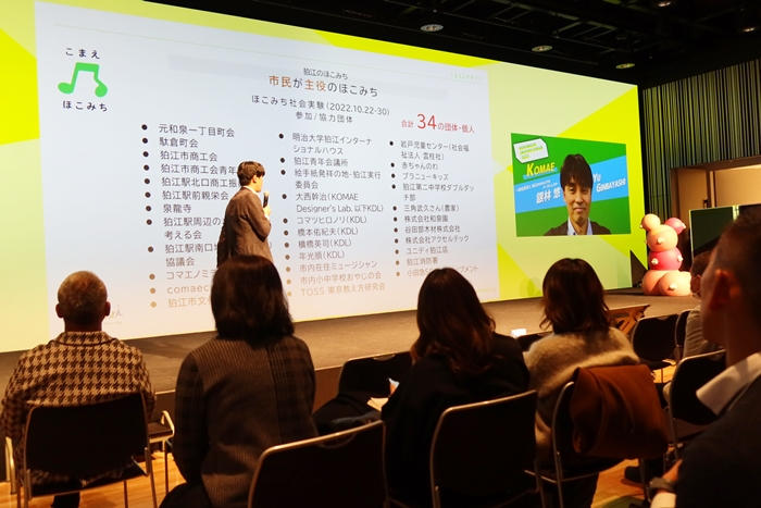 大きな産業のない同市では財産は市民。そこで2024年春からの狛江駅北口周辺の市道でのほこみち運用開始に先立ち、2022年から市民と一緒に社会実験やトークイベントなどを積み重ねてきたと一般社団法人狛江まちみらいラボチーフディレクターの銀林悠さん。合計で34もの団体、個人が関わって行われてきたそうだ。