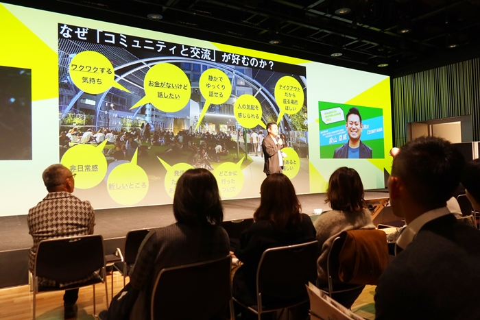 泉山さんがアンケート調査をした結果によると、若者が人中心の道路=公共空間を好むのはそこにコミュニティと交流があるからだという。彼らが挙げたキーワードとしてはワクワクする気持ち、お金がないけど話したい、非日常感、人の気配を感じられる、新しいところなど。気軽に人に会えるこれまでにない空間というのがポイントということだろうか。