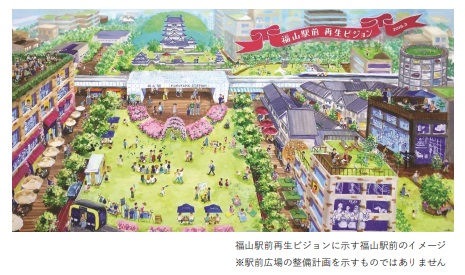 現在はバス、タクシーのためのロータリーになっているが、これを人のための広場に変えていくという。すでに社会実験を経て福山駅前広場整備基本方針が策定されている。あとは実現を待つだけ。楽しみである。