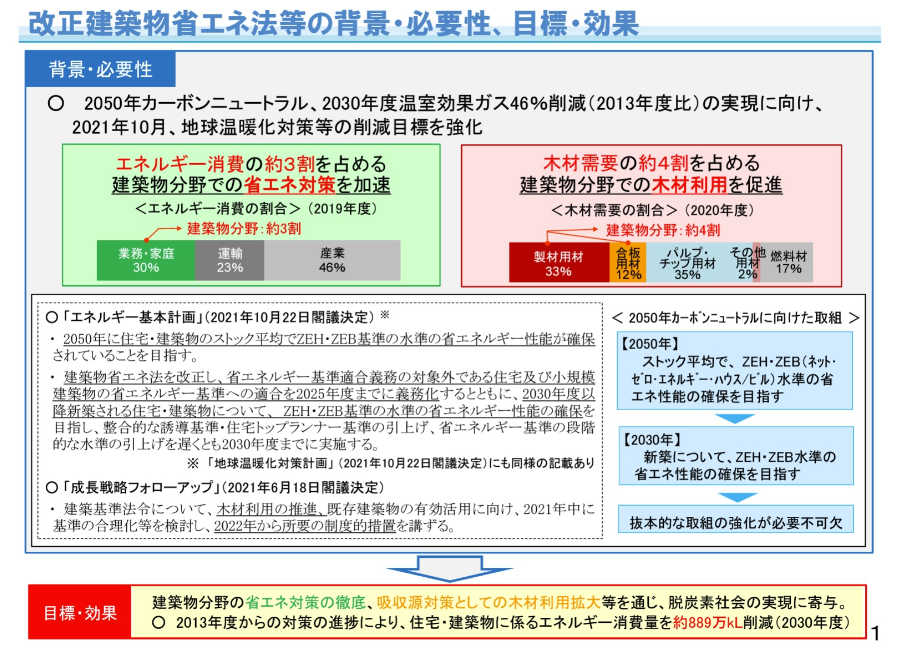 冒頭にあげた通り、国交省でも2030年度にはCO2の排出量を2013年度から46%削減する必要があり、遅くとも2030年までに省エネ基準をZEH基準の水準の省エネ性能に引き上げ、適合義務化を計画している。 つまりは、10年後LCCM住宅が当たり前になる日も決して夢物語ではないということだ。