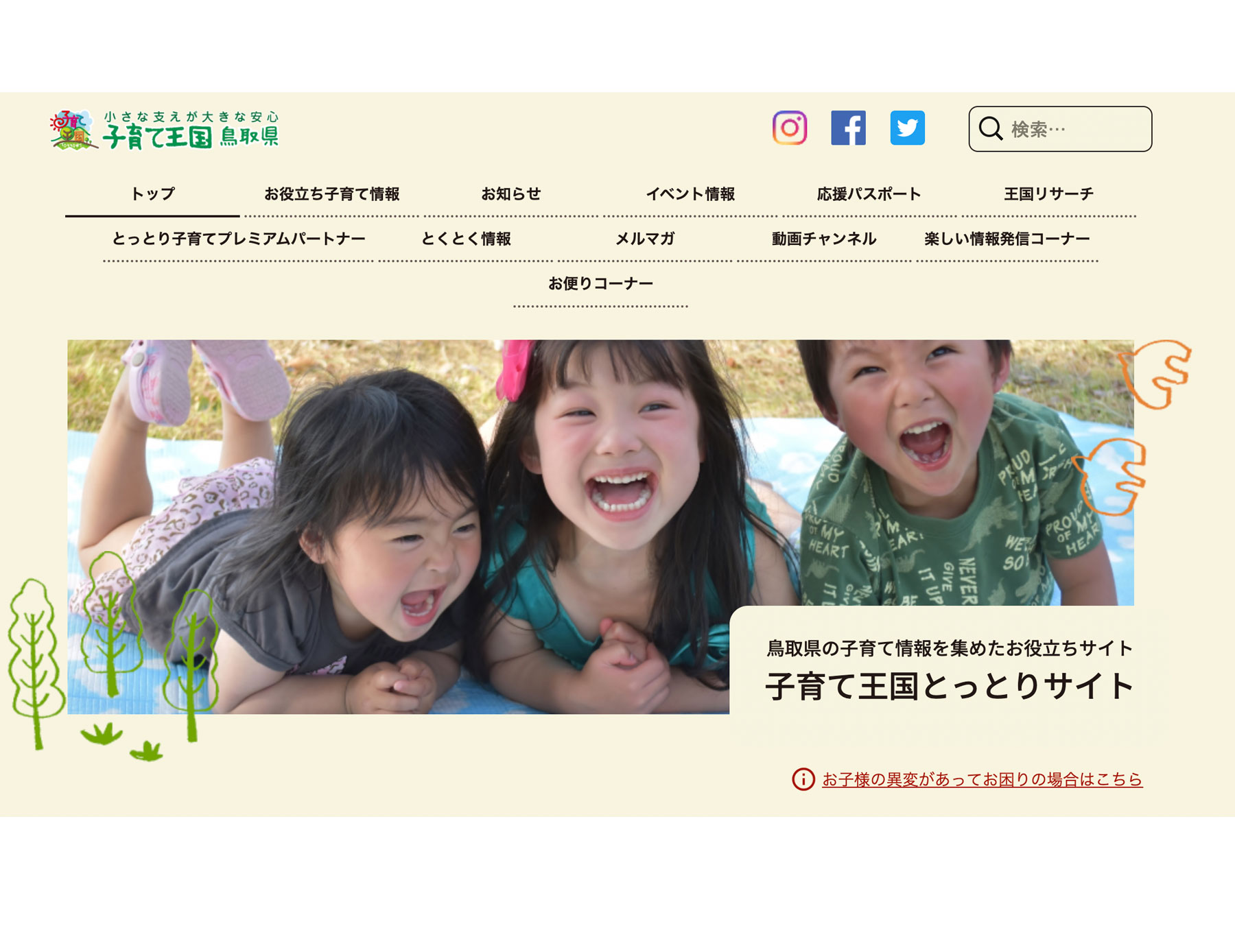 鳥取県では子育て王国として、子育て情報に特化したウェブサイトを運営。情報が集約されていて、SNSを通したイベント情報も充実している。鳥取市では「妊婦さん応援給付金」や「出産・子育て応援給付金」「高校生等通学費助成」「保育料の無償化」「多子世帯の保育料の軽減」など多くの補助が用意されている。