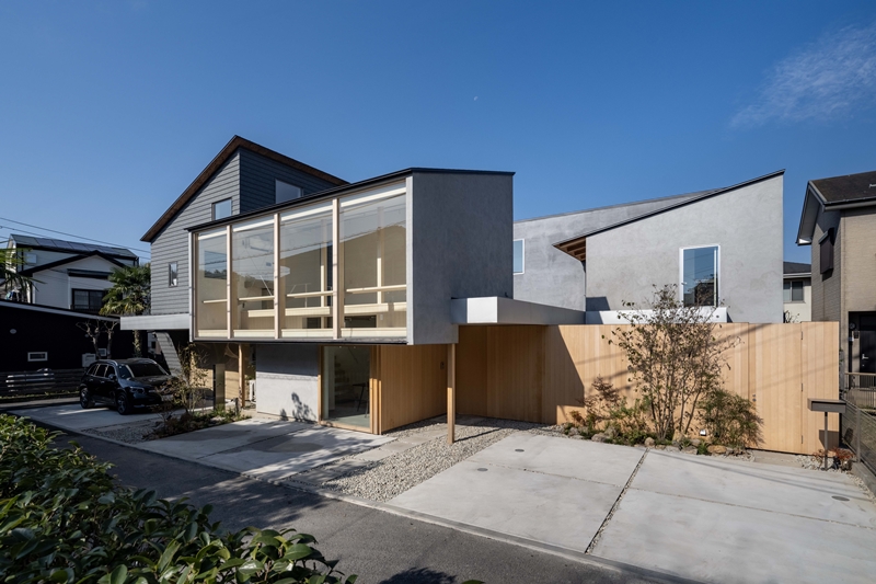 2つの家は付かず離れずの距離をデザイン、隣り合う暮らしで子育てが楽に