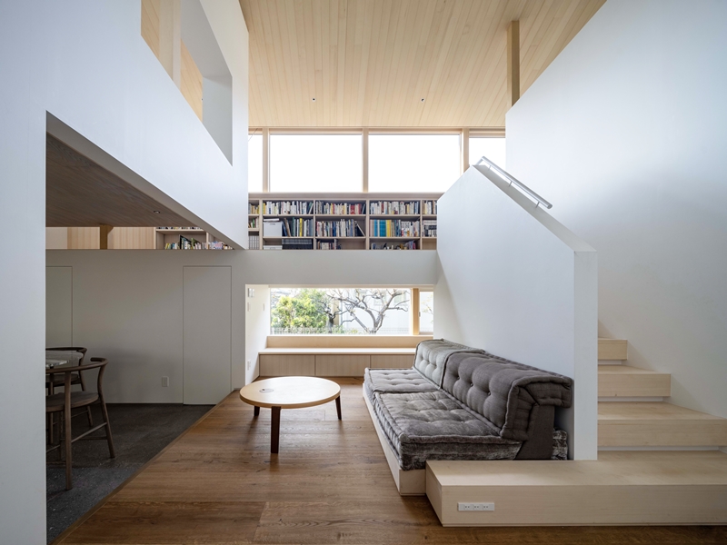 「この地域には借地も多く、誰のものか分からない場所がたくさんあります。パブリックとプライベートが曖昧というか、山道を登っていくといきなり寺の境内に出るなど連続する空間なのに急に景色が変わる。その回遊性、変化が魅力のひとつ。この家でも周囲のそうした風景を取り込んでいます」。