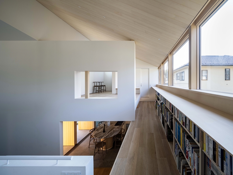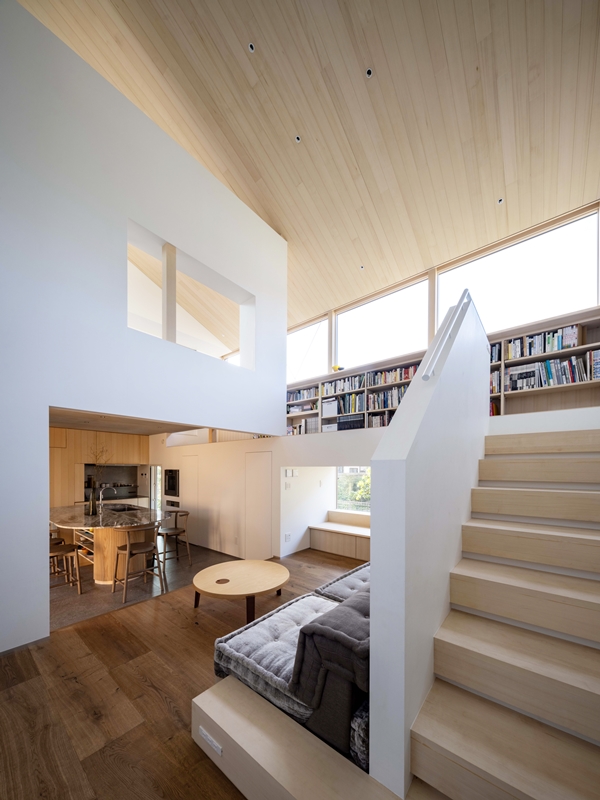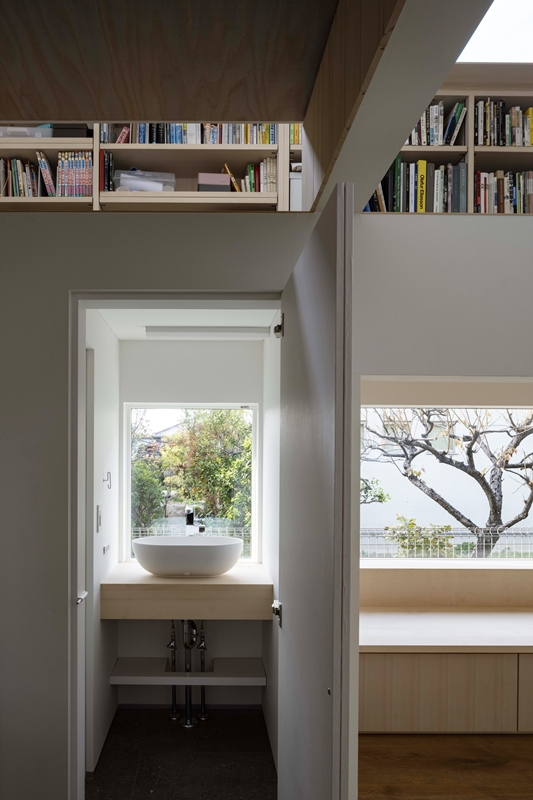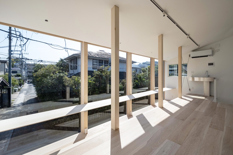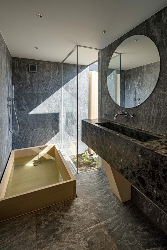 ここで壁に穿たれている窓は鎌倉のあちこちで見られるやぐらをイメージしたもの。やぐらとは切り立った岩肌に掘られた洞穴のことで、平地が少なかった鎌倉で作られた中世の墓所である。土地へのリスペクトが散りばめられた家というわけだ。