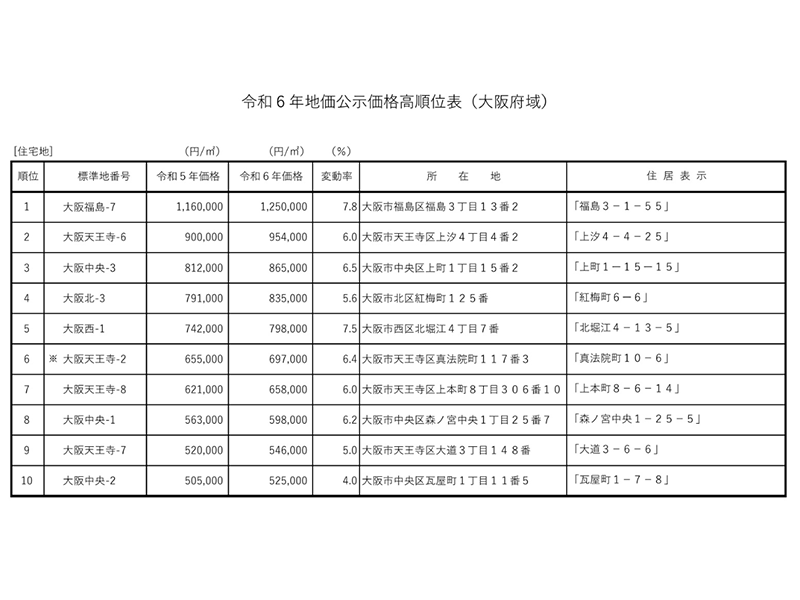 「大阪中央5-19」の上昇率は、全国の商業地のなかでも8位にランクインする上昇率となっている。