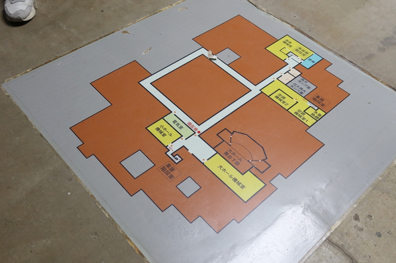 地下にも入れていただいた。美術館と劇場は回廊で結ばれてはいるものの、建物自体は別々。ところが地下は全部繋がっていて、機械室などはすべて地下にある。メンテナンスなどで移動する時にはいちいち地上に上がる必要なく、一度に2つの建物にアプローチできる。