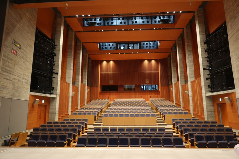 「客席数は2層式1500席で、舞台の奥行きが20m、天井までの高さは30m。大がかりな舞台装置が必要なオペラ、バレエの公演も可能で、コンサート利用時には走行式音響反射板をセットすることで専門のコンサートホール並みの響きを造り出すことも可能。できない公演はほぼないのではないかと思います」