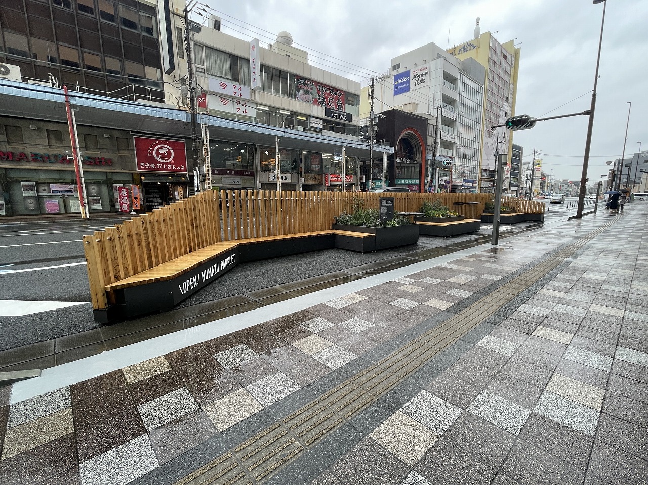 そしてこう続ける。「実は現在、OPEN NUMAZUはこの場所に常設されています。待ち合わせをしたり、お散歩の休憩をしたり、買ってきたものをここで食べたり……。今では誰もが自由に使用できるパークレットとして定着しております」