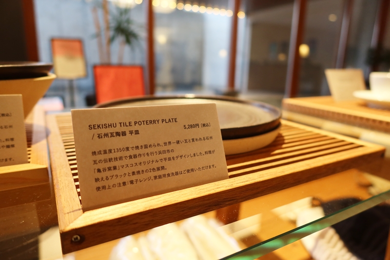 「何回も試作品を作っていただき、ひとつひとつ、良いと思うものを作っていきました。それ以外でも石見焼、萩焼などの食器類、浴衣などもオリジナルで、一部はロビー、オンラインで販売もしています」。