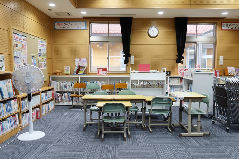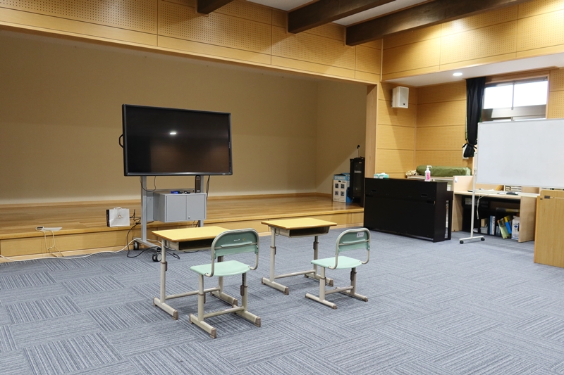 何よりもこの複合施設らしいのがメディアルーム。ここは小学校の音楽室であり、図書室であり、公民館の講堂であり、地域活動の場でもある。子ども達が音楽の授業を受けている時もあれば、子どもから大人まで地域の人々が集まって防災のレクチャーを受ける時もあり、複合施設が目指す「ゼロ歳から100歳まで」を実現している空間なのである。ちなみに今回の取材はここで行われた。その意味では会議室、応接室としても使える空間であるともいえる。