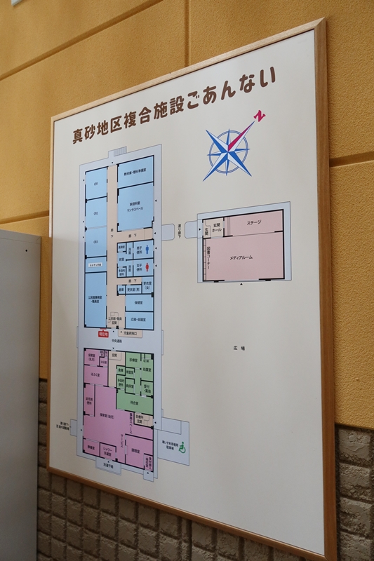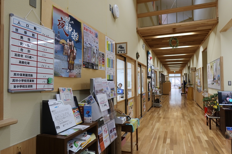 真砂地区の人口規模を考えると巡回医療(医師、看護婦などが車両で地域に出向き、車両を移動診療施設としたり、公民館や学校などの空きスペースを一時的な診療施設とするやり方)が一般的だろうが、この地域では無医村は困ると早い時期から医師との協力関係を築いており、市中心部で開業している医師に火曜日、金曜日の午後に常駐してもらってきた。複合施設でも専用のスペースを用意した。