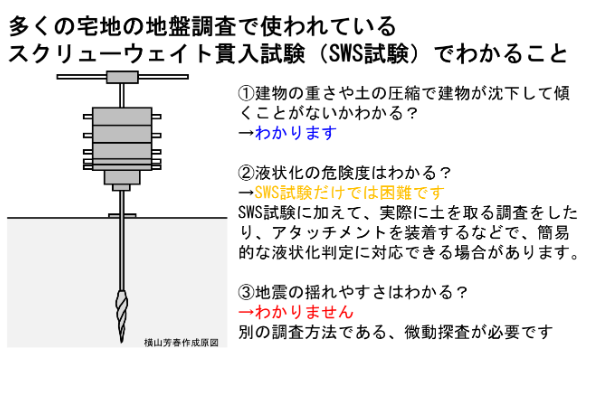 ただし「スクリューウエイト貫入試験はあくまで推測。砂か粘土か砂利かなどといった、より詳しい地下の土の種類を知るためには、土を採取するアタッチメントを付けるか、ボーリング試験が必要な場合もあります。また、一般的なスクリューウエイト貫入試験だけでは、地震に対する地盤の揺れやすさや、液状化しやすさの判定はできません」と横山さんは言う。