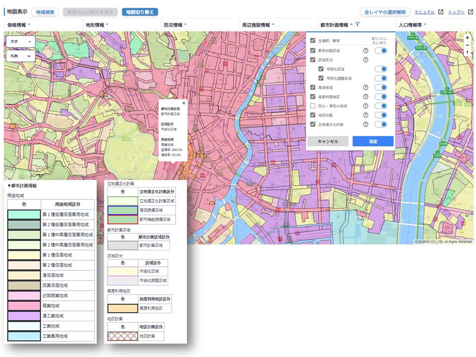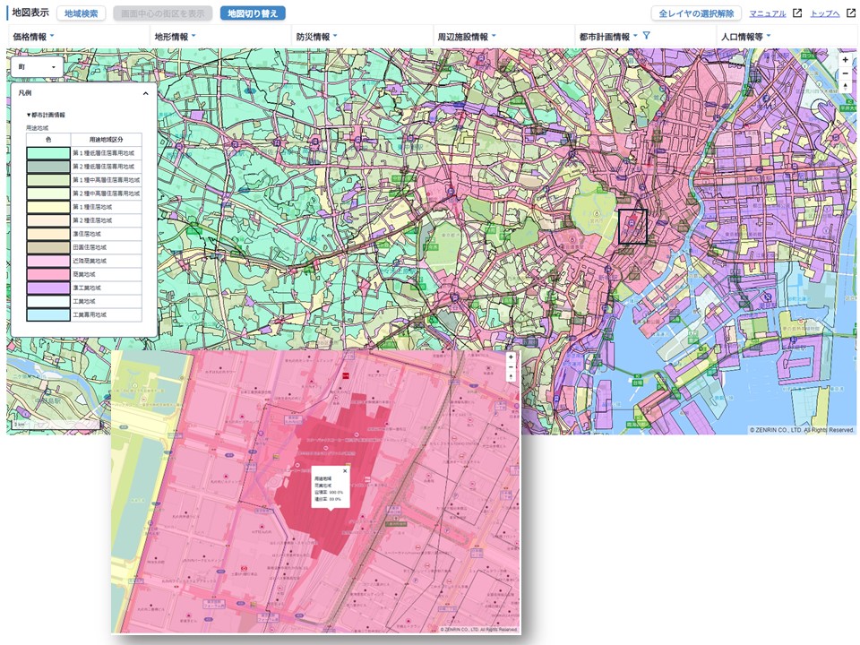 2つ目は、ライブラリにて閲覧可能な都市計画情報は、情報更新が間に合っていないケースがあることに留意してほしい。用途地域をはじめとする都市計画は決定した後も社会経済情勢の変化や、民間事業者からの都市計画提案などにより年に数回は変更が行われている。ライブラリに掲載されている都市計画情報は、参考情報として扱うようにしてほしい。