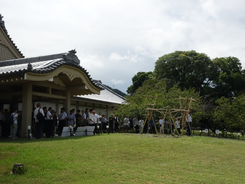 建築学生ワークショップは、全国から建築を学ぶ大学生が集い、グループで「フォリー」と呼ばれる1日限りの建築物を公開プレゼンテーションに向けて制作する。今年は6月8日の現地説明会・調査に始まり、エスキース、リモート会議、制作、提案作品講評会、実施制作打合せを経て、9月10日から会場の醍醐寺で制作合宿を開始し、9月15日の公開プレゼンテーションを迎えた。