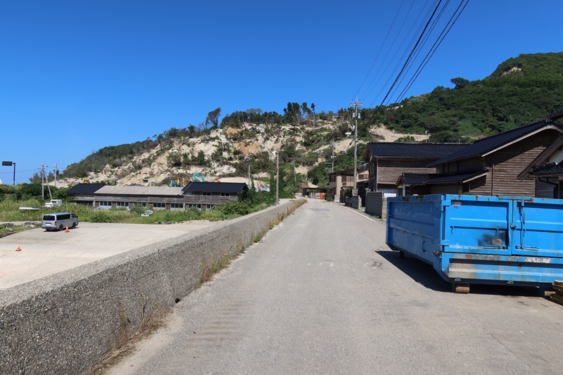 集落の前にあった入り江は2mほど隆起しており、かつての青々とした風景は砂で覆われ、わずかばかりの水があるばかり。周囲の山は大きく崩れ、ところどころに白い岩肌があらわになっていた。そしてトンネルも輪島市に続くものは通れるようになっていたものの、珠洲市に続くもう一ケ所は土砂に埋もれたまま。電気は数週間程度で復旧したものの、水道、通信ケーブル(テレビ、ネット)のライフラインも復旧していない。