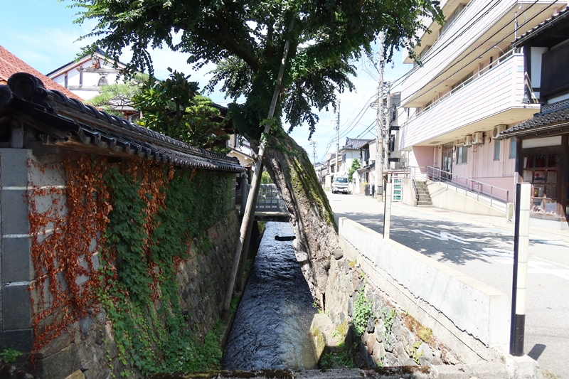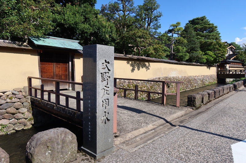 もうひとつの大野庄用水も観光客ならほぼ必ず目にしている。長町武家屋敷の土塀沿いを流れている用水で、屋敷内の庭園の曲水にも利用されているとか。延長は10キロほど。鞍月用水同様完成年は不明だが、灌漑、物資運搬、防火、防御、融雪など多目的に使われてきた。