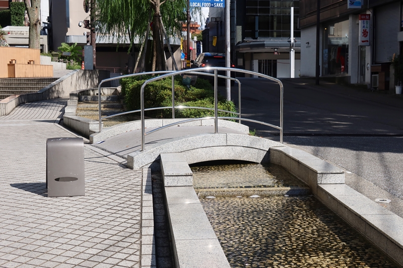 同じく犀川大橋を渡ったところの右手を右折したところからにはもう1本、泉用水が流れている。こちらは室生犀星ゆかりの雨宝院周辺からにし茶屋街裏手を通り、北陸鉄道石川線野町駅を経て増泉川に流れ込むもの。にし茶屋街を訪れたら一緒に眺めてみていただきたい。