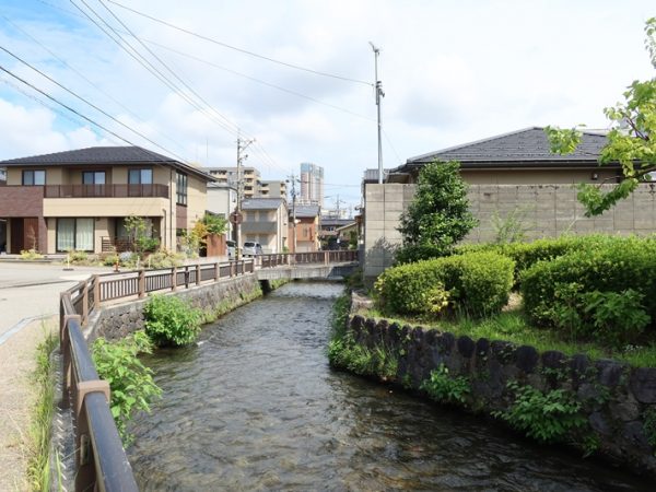 こちらも犀川左岸にあり、南大通りの有松交差点近くから斜め北に流れているもので、周辺は大きな高低差のある地域。そのため、用水は谷底を流れていることになる。ただし、この川は市内中心部のものと違い、川沿いを歩くのは難しく、流路を探しながら歩くことになる。市ホームページには用水見て歩きMAPがあるのだが、土地勘がない人にはいささか分かりにくい。