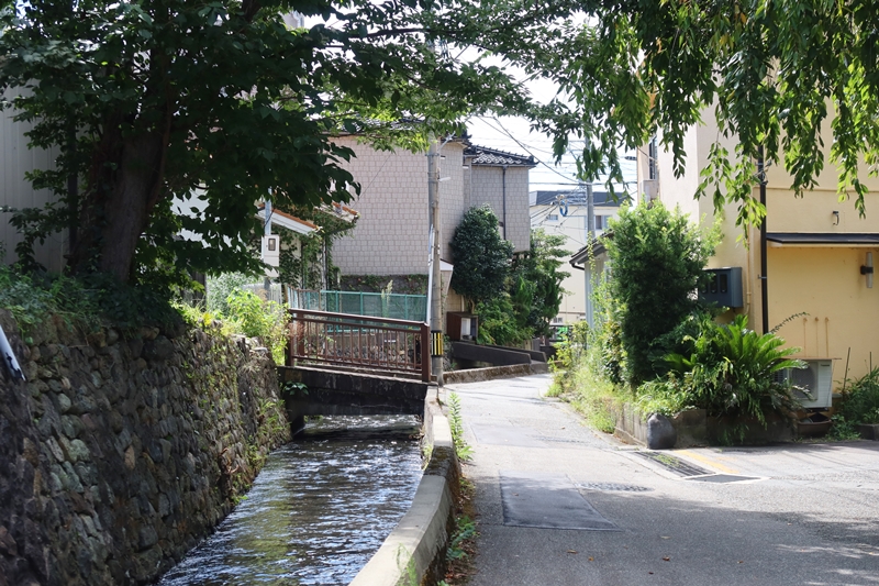 もう1本のお薦めは勘太郎川。これは小立野台地下の住宅地などを流れる辰巳用水の分流とのことで、市のホームページによると石垣や隧道、洗い場跡が残るなど市街地とは思えないのどかな風景が広がっているとか。