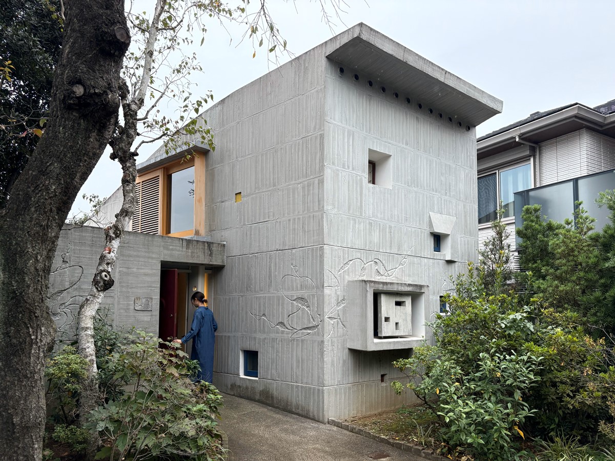 ちなみに、外壁に残るレリーフは吉阪の当初の狙いではない。吉阪は荒々しいコンクリート打ち放しを考えていたが、打ち上がった後にジャンカ(コンクリート打設時に骨材が表面に現れた部分)を見た近藤との意見の相違が露呈。吉阪は土に近い感触を考えていたが、近藤は南米の鋼のような山肌をイメージしていたのだ。ペンキを塗ってしまう案もあったが、最終的には彫刻家の坂上政克に依頼してレリーフに仕上げた。このレリーフが家の魅力を増していることは明らかだ。ナイス・アジャスト!