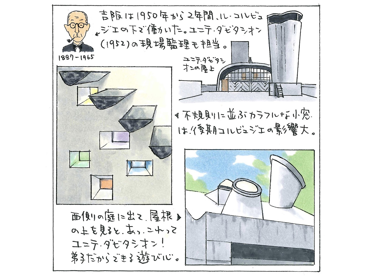 ヴィラ・クゥクゥは、吉阪が1952年に日本に帰国してから設計した3つ目の住宅だ。完成時、吉阪は40歳。