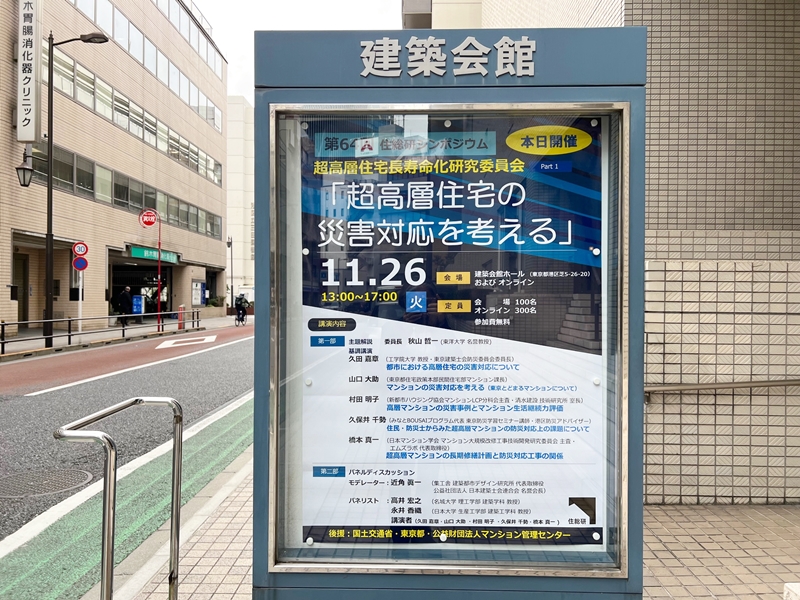 だが、これまでの災害対応は制度、法令その他を含め、大半が木造一戸建てを中心に組み立てられている。建物自体は倒壊するまでの被害を受けないとしても、被害を受けないはずはなく、そこで生活し続けようと考えるのは他の住宅と同じ。そこで今回のシンポジウム『超高層住宅の災害対応を考える』では超高層住宅の現状から始まり、あるべき姿、実際の災害事例、住民の不安、長期修繕の現状などから超高層の災害対応を考えるという。
