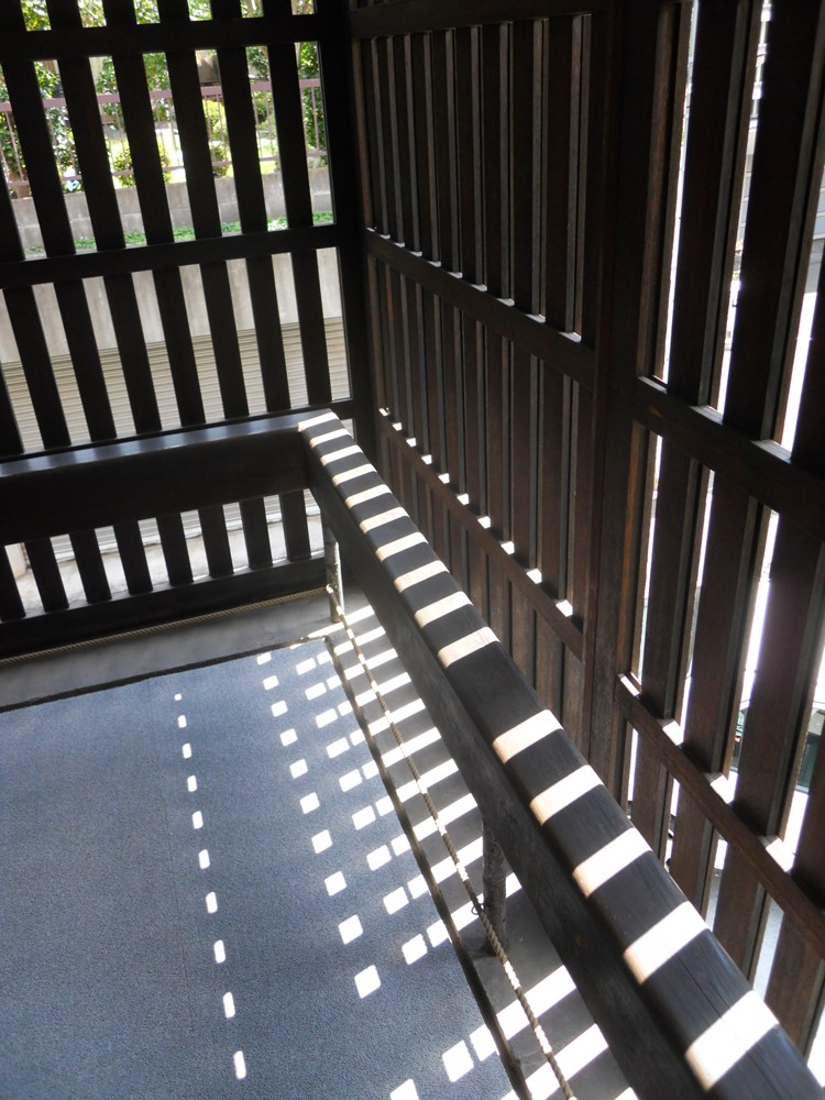 ⑤木製雨戸は壁柱の陰に完全に収納される。