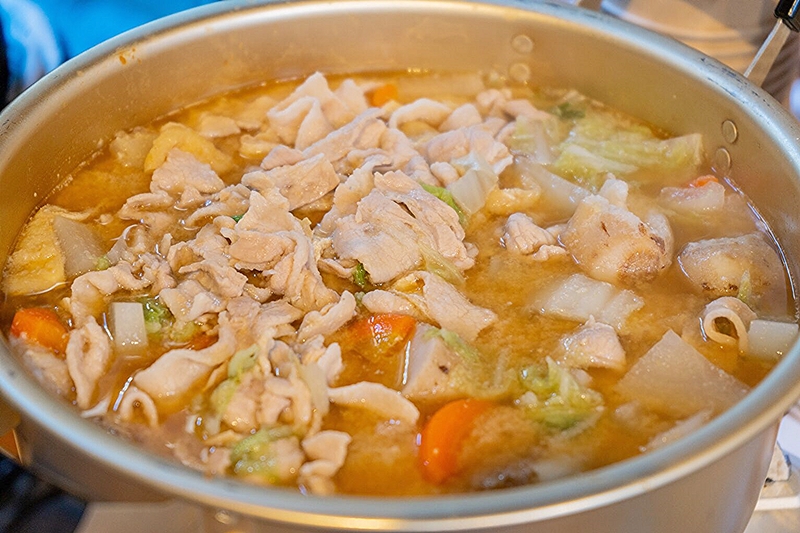 宮城風は味噌味で肉は豚。さまざまな根菜を使い、具材を柔らかく煮込むのが特徴とのこと。全日本芋煮会同好会のレシピでは生姜を多めに入れてアクセントをつけているそうだ。