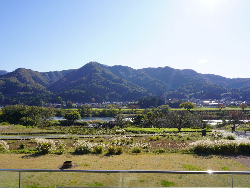約3万坪という広大な敷地。目の前には九頭竜川が流れ、その向こうに永平寺がふもとにある大佛寺山(だいぶつじさん)や吉野ヶ岳という山が連なる。太陽が出ているときは緑豊かな山々と九頭竜川の清らかな流れが目に鮮やかに、太陽が沈めばそれらが奏でる音が耳に届く。昼夜滞在するオーベルジュだからこそ、その変化を体感でき、日本酒を生む風土を存分に感じられるはずだ。