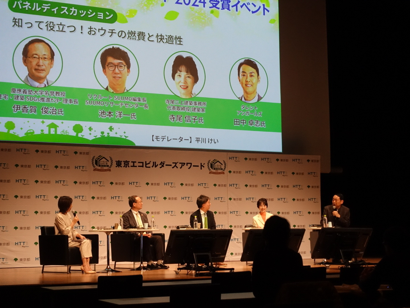 表彰式では、リーディングカンパニー賞を受賞した15社による取り組みの説明と、アンガールズ・田中さんをゲストに審査員による「知って役立つ!おウチの燃費と快適性」というテーマでのパネルディスカッションが行われた。
