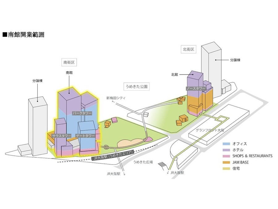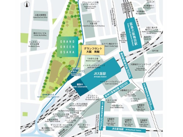 グラングリーン大阪は、約4万5,000m2の大型都市公園「うめきた広場」を中心に、北街区と南街区の3つのエリアで構成されている。都心の駅前にこれほどの規模の都市公園を設ける再開発は、日本国内では極めて希少な取り組みであり、大阪駅周辺の都市価値向上に寄与することが期待されている。