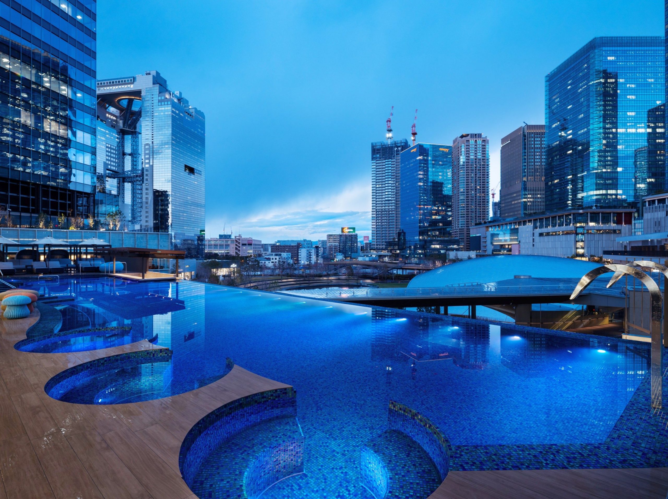 さらに、都市型スパ「うめきた温泉 蓮」では、天然温泉や公園を望むインフィニティプール、本格的なジムが整備され、健康・美容・リラクゼーションのウェルネス拠点として機能する。