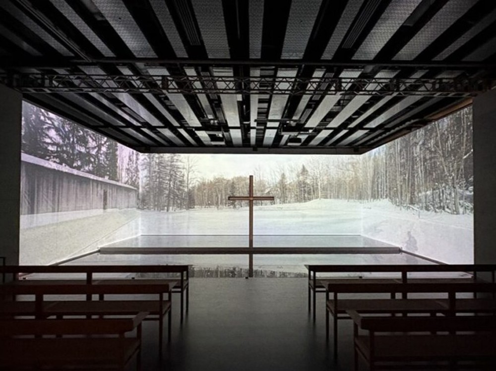ご法度の“水”を室内に張った「水の教会」の原寸展示