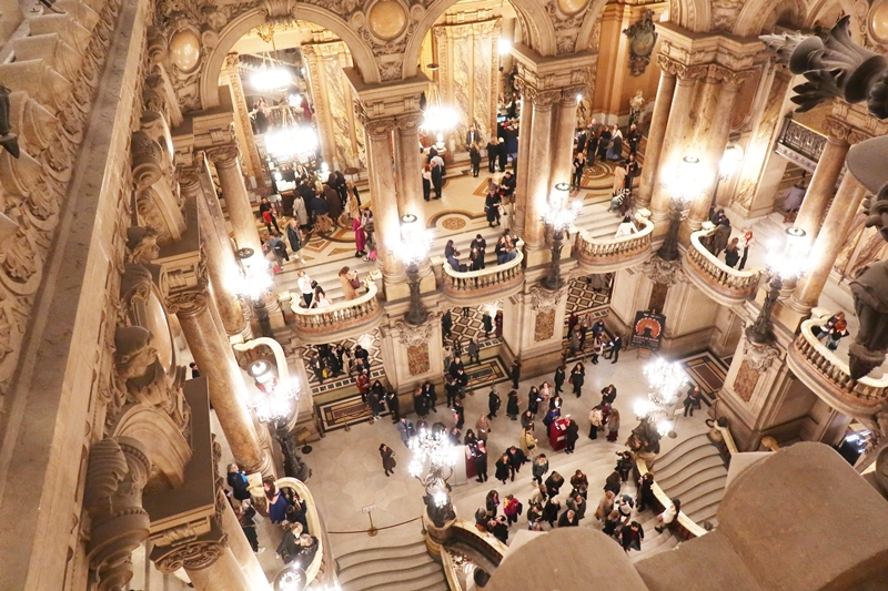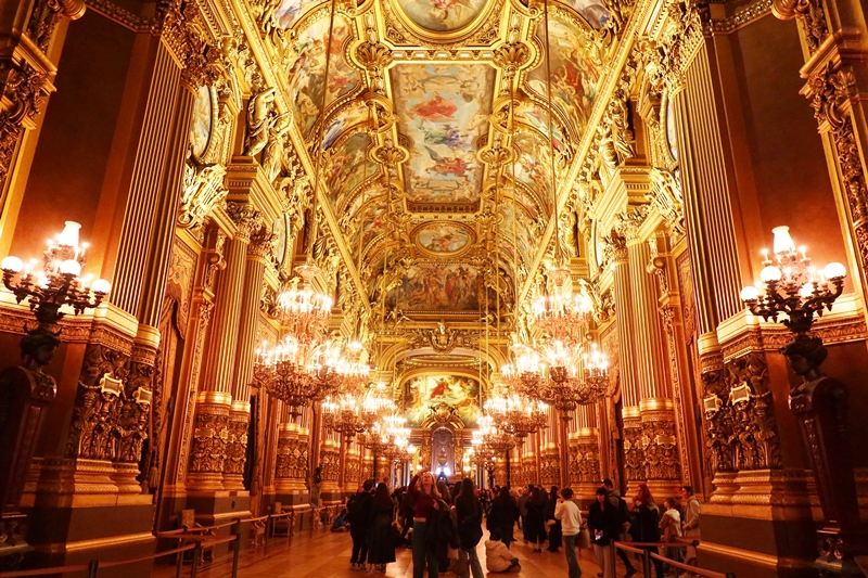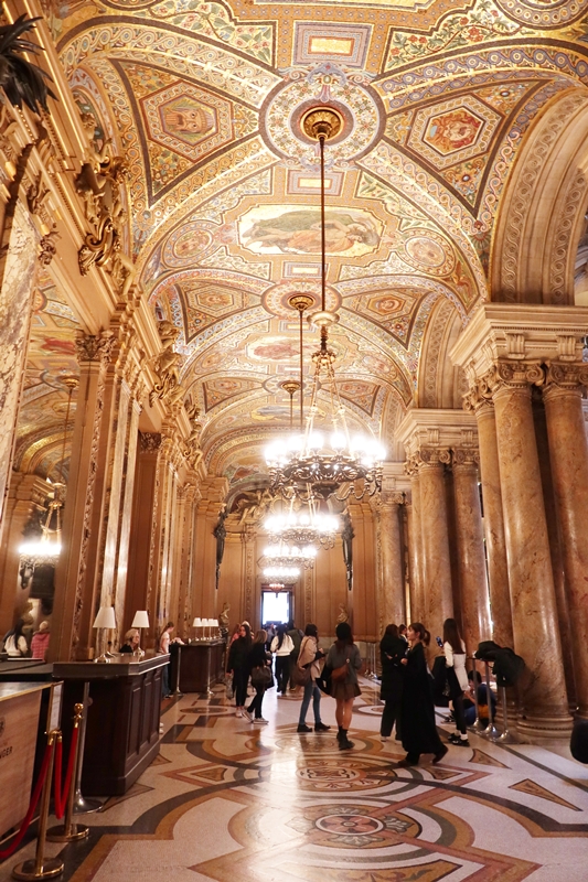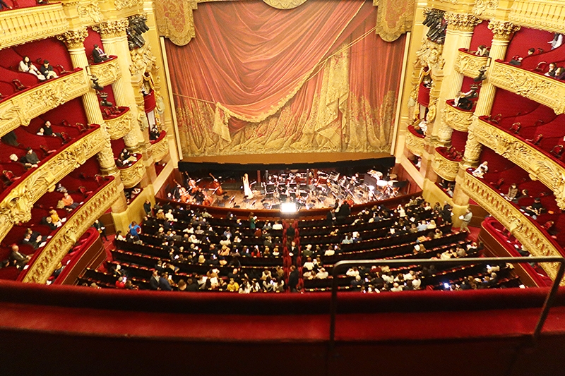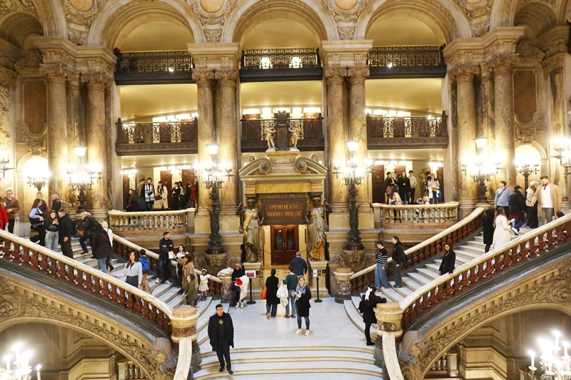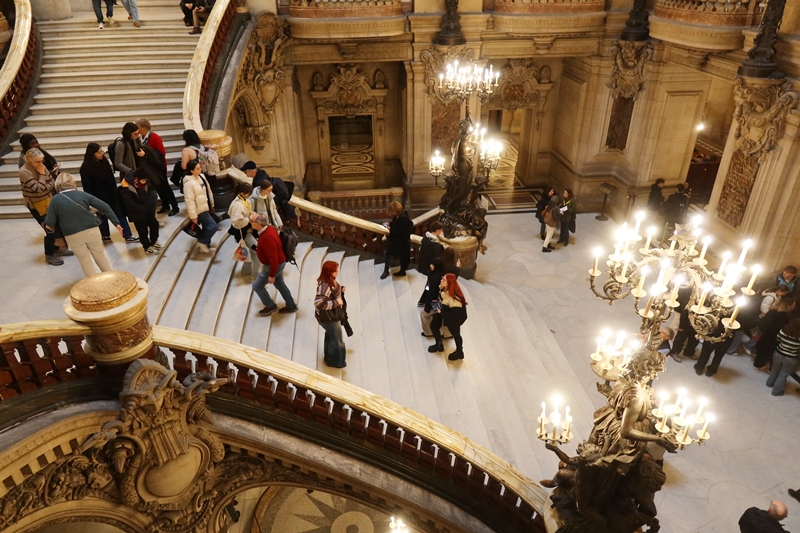 当時の見学料は1人あたり2.50フラン(25ユーロ)。現在のセルフガイドツアーチケットは15ユーロ(1ユーロを160円として計算すると2400円)となっており、それなりの額にも関わらず、大行列ができるほど。150年経ってもガルニエ宮は建物としての魅力を保ち続けているのである。