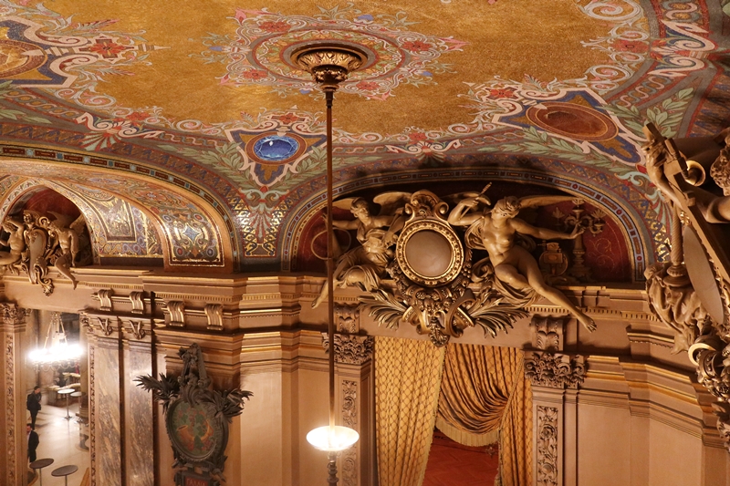 ガルニエ宮は数多くの彫刻、絵画などの作品で彩られているが、驚くことにそれらはすべてガルニエ自身が直接、芸術家をチョイス、依頼したもの。隅々に至るまでガルニエの趣味で統一された空間なのである。